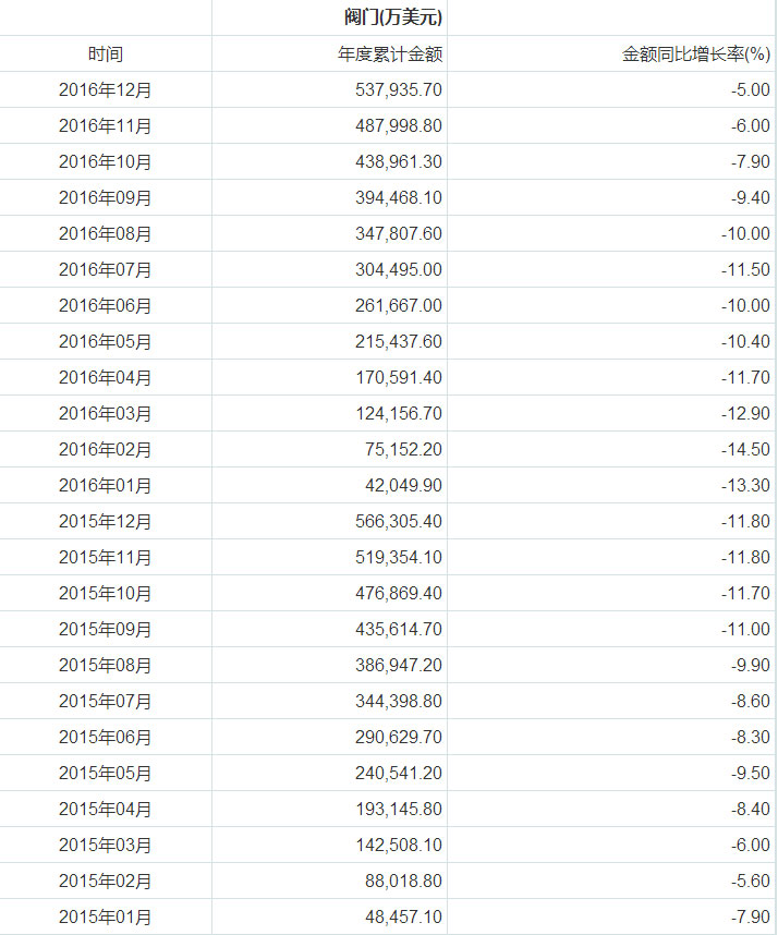 - 國(guó)內(nèi)閥門的春天:2016年至2017 閥門進(jìn)口金額同比下降